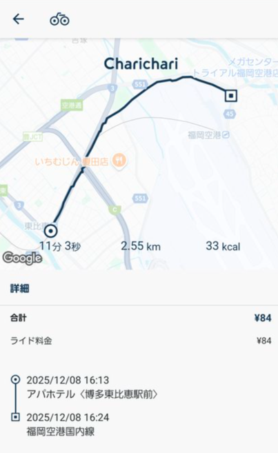 チャリチャリのライド履歴