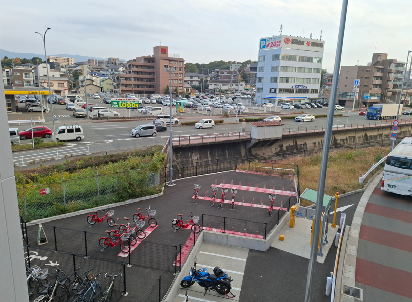 福岡空港までは2.5㎞を11分かけて移動しました。空港の駐車場に併設するような形で大きなポートがありました。